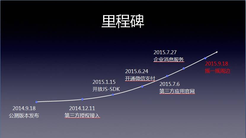 9月22日,在第四季微信公开课的活动上,微信开放平台业务部副总经理孙剑晖公布了微信企业号一周年的相关数据,并宣布从一周年开始,微信企业号的单个账号注册用户数上限从50人大幅提升至200人。除此之外,企业号还接入摇一摇周边功能,为企业移动应用提供更加便捷的入口。